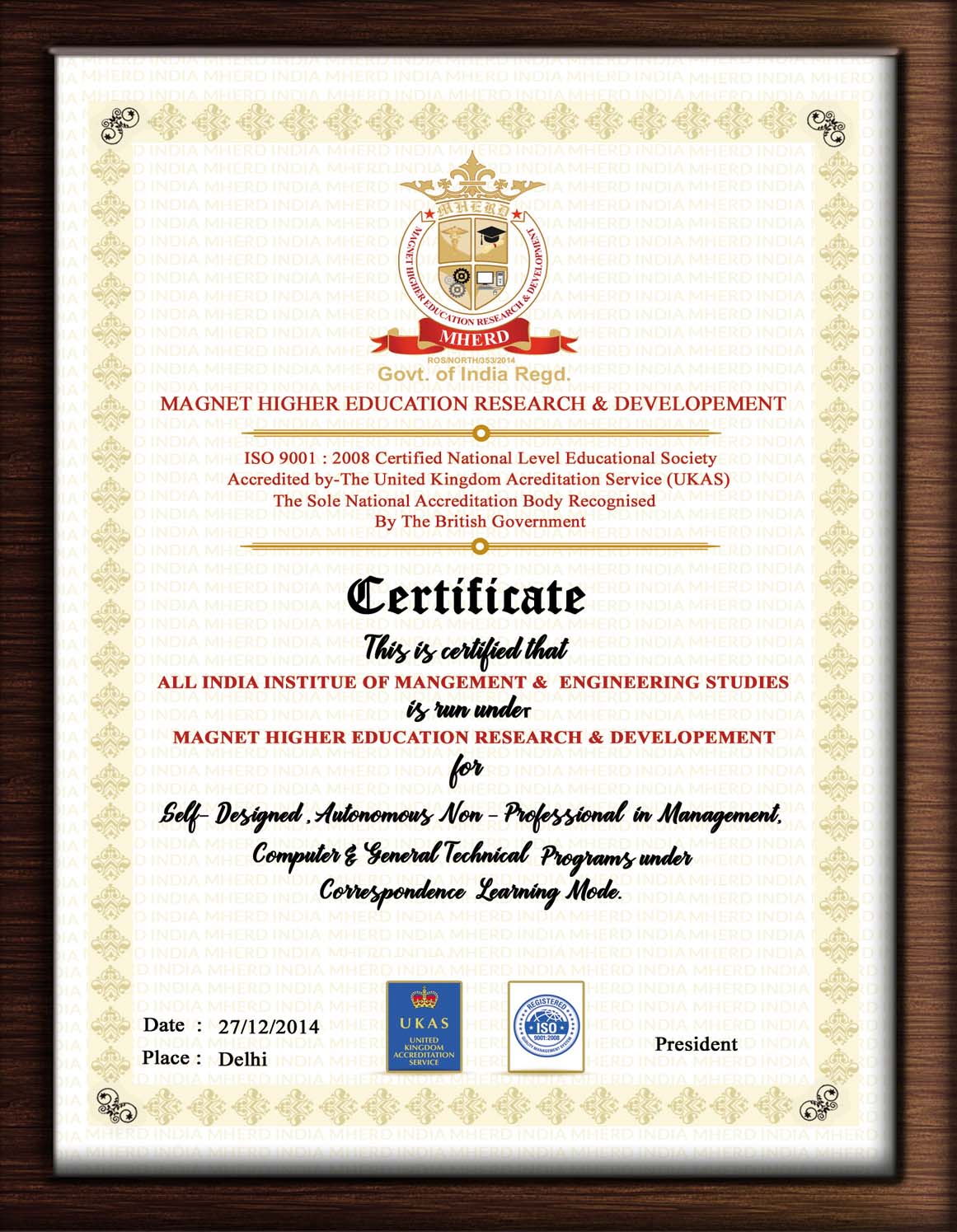 So, Magnet Higher Education Research & Development Society / All India Institute of Management & Engineering Studies, Delhi is a mile stone of Globalization of Education in India. The Society / Institute has lit a candle of the light and a million candles will lit ablaze the entire education firmament the whole world in the light of truth and awareness.